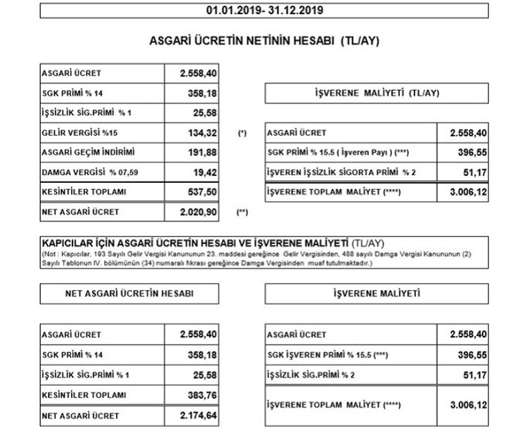 Toplantı sonrası işçi ve işveren temsilcileriyle kameralar karşısına geçen Aile, Çalışma ve Sosyal Hizmetler Bakanı Zehra Zümrüt Selçuk, milyonlarca çalışanı ilgilendiren asgari ücretin 2019 yılında yüzde 26,05 artış ile net 2 bin 20 TL, brüt 2 bin 558 TL olarak uygulanacağını açıkladı. Selçuk, “2019 yılında net asgari ücreti oy birliği ile belirledik” dedi.