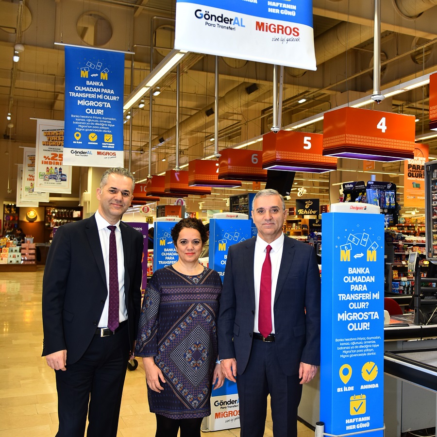 Kurulduğu günden bu yana perakende sektörünü ilklerle tanıştıran Migros, Gönder-Al Ödeme Hizmetleri A.Ş. iş birliğiyle bir ilke daha imza attı. Para Transferi hizmeti kapsamında para gönderme ve para alım işlemleri artık tüm Migros mağazalarının kasalarından, banka hesabına ihtiyaç duymaksızın, mağazaların açık olduğu saatler içerisinde, anında ve uygun fiyatlarla gerçekleştirilebiliyor.