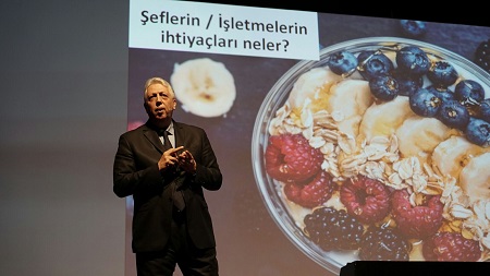‘Özgün Bölgelerle Globalleşme’ başlıklı bir sunum yapan Yemek Kültürü Yazarı ve Şef Ömür Akkor da, geçmişten günümüze Anadolu mutfağının serüveni hakkında bilgiler verdi, Doğu mutfağının korunması gerektiğini vurguladı.